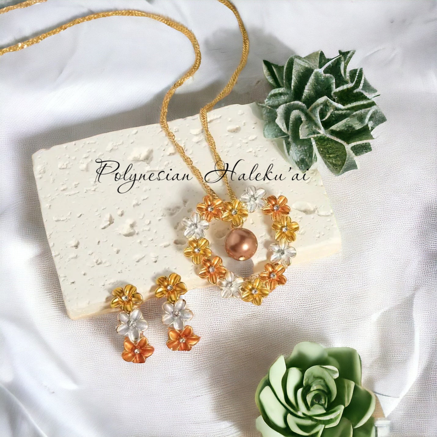 Plumeria necklace set with matching earrings.